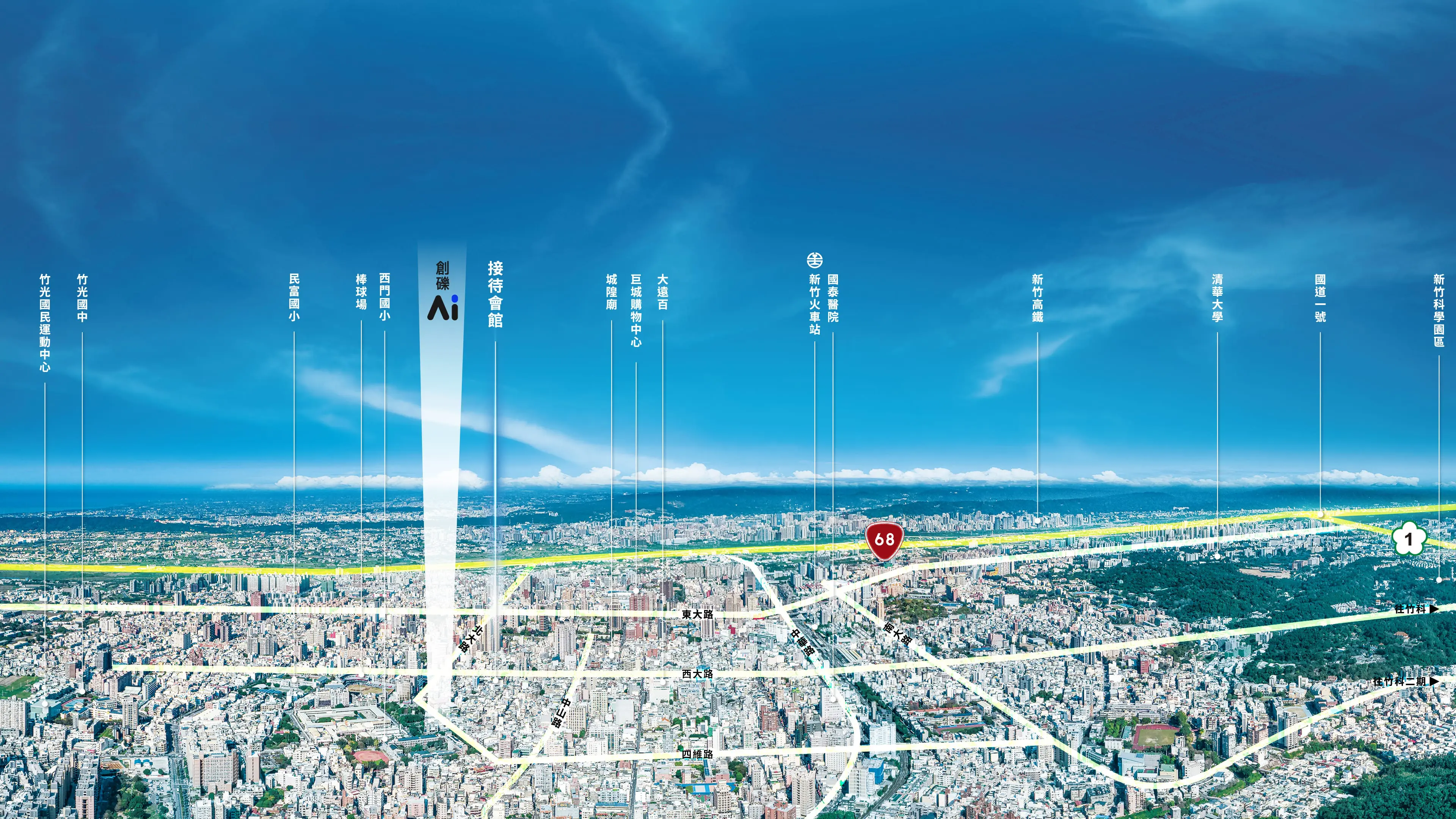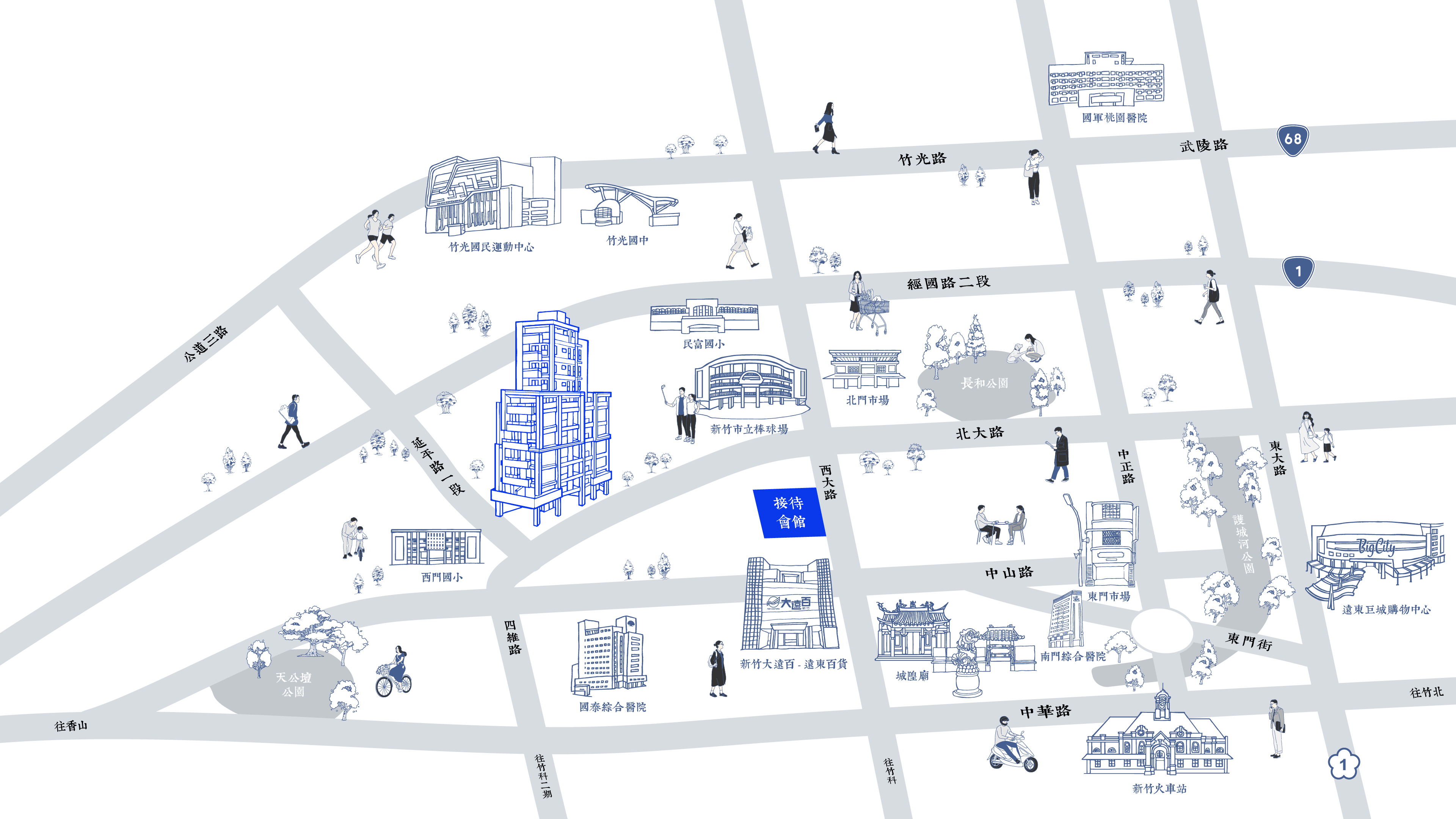 都會朝未來演化,新竹百年優渥金軸,北大路、西大路、延平路黃金三角核心,映演一場建築代謝革命。優質西門國小毗鄰,生活量能一路隨行,城隍廟商圈深厚人情與經典美食,大遠百、巨城百貨國際時尚輝映,永恆不滅的奢光;寶山路直騁竹科動脈,風華底蘊與科技潮奢同頻共振,定錨北大路不凡的精神領地。
